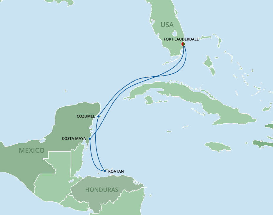 In the 1800s, William Lauderdale built a fort. Today, 16 million visitors come each year for miles of broad white sandy beaches, dozens of lush green golf courses, and Caribbean cruises from Fort Lauderdale. Stroll the famous beachfront promenade, just 15 minutes from the port, and plunge into the warm Atlantic. You’ll sail from Port Everglades. Fort Lauderdale-Hollywood International Airport is only a ten-minute drive from Port Everglades, and shuttle buses can take you from the airport to the cruise port. Free Wi-Fi and parking facilities are available at the port.
