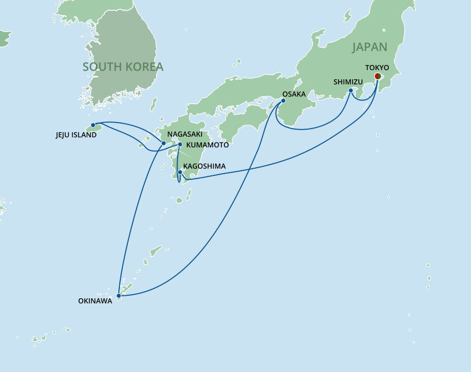 Osaka's Tempozan Cruise Terminal is located about 15 km (9 miles) from Osaka city center, a 30-minute drive. Kyoto is roughly 60 km (37 miles) away.