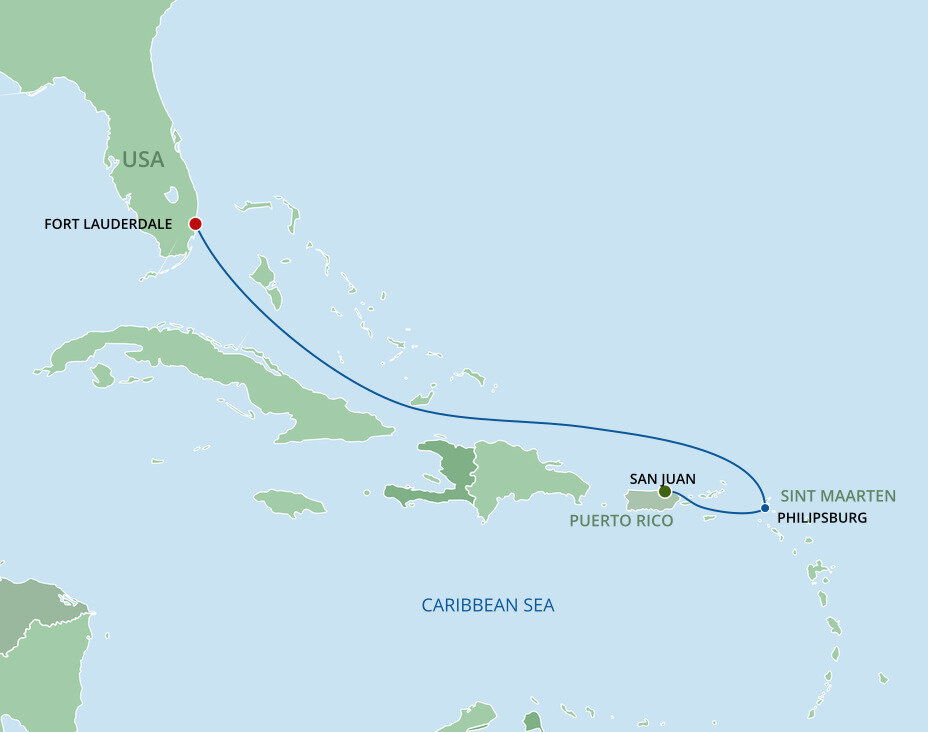 Philipsburg is the capital of Dutch Sint Maarten and it's port is conveniently located about 2 kilometers (1.2 miles) from downtown Philipsburg, taking roughly 5 minutes by car or a leisurely 20-minute walk. Visitors can explore the vibrant Front Street, known for its duty-free shopping, colorful boutiques, and lively cafes. Transportation options include taxis, rental cars, and water taxis. Don’t miss a visit to the Great Bay Beach, just steps from the main shopping area, or venture to Maho Beach to watch planes land dramatically close to the shore.