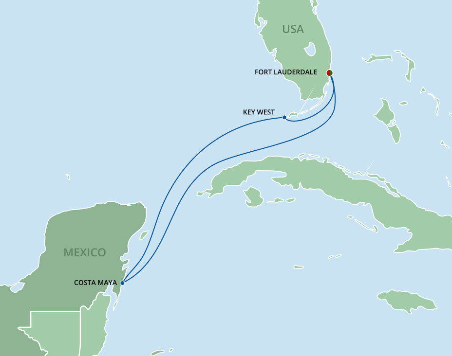 The southernmost point of the United States, Key West is known for its glorious sunshine, wild beaches, historical charm and carefree attitude. It boasts year-round tropical weather, and some of the clearest snorkelling and most preserved coral reef structures in the world. Ships will dock at this port.