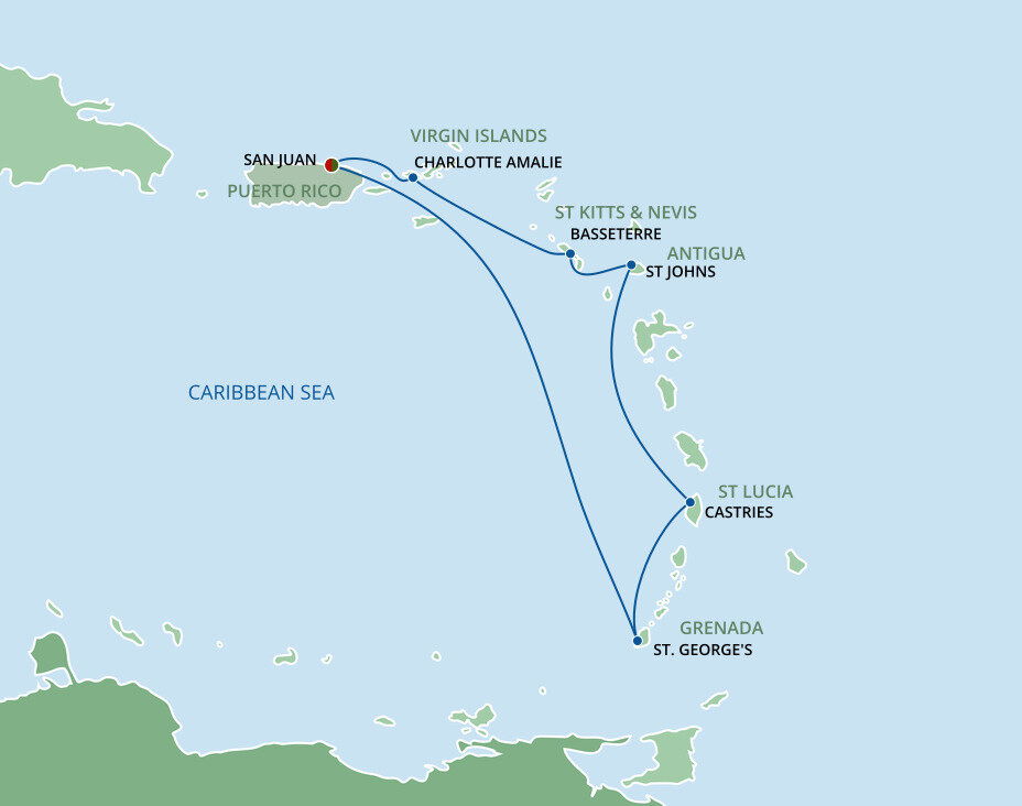 San Juan's picturesque cobblestone streets, plazas and chapels reflect its Spanish heritage. But the second oldest city in the Americas also boasts fine beaches, lush rainforests, verdant mountainsides, imposing forts and a lovely tropical climate. Ships will dock at this port.