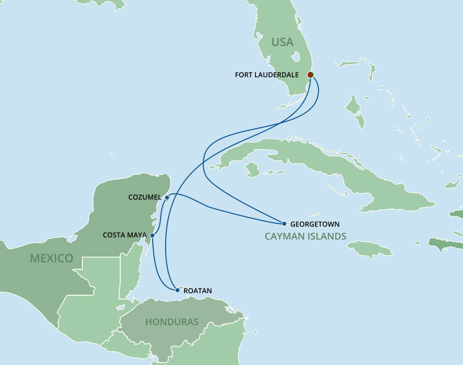 In the 1800s, William Lauderdale built a fort. Today, 16 million visitors come each year for miles of broad white sandy beaches, dozens of lush green golf courses, and Caribbean cruises from Fort Lauderdale. Stroll the famous beachfront promenade, just 15 minutes from the port, and plunge into the warm Atlantic. You’ll sail from Port Everglades. Fort Lauderdale-Hollywood International Airport is only a ten-minute drive from Port Everglades, and shuttle buses can take you from the airport to the cruise port. Free Wi-Fi and parking facilities are available at the port.