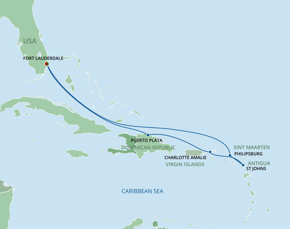 In the 1800s, William Lauderdale built a fort. Today, 16 million visitors come each year for miles of broad white sandy beaches, dozens of lush green golf courses, and Caribbean cruises from Fort Lauderdale. Stroll the famous beachfront promenade, just 15 minutes from the port, and plunge into the warm Atlantic. You’ll sail from Port Everglades. Fort Lauderdale-Hollywood International Airport is only a ten-minute drive from Port Everglades, and shuttle buses can take you from the airport to the cruise port. Free Wi-Fi and parking facilities are available at the port.
