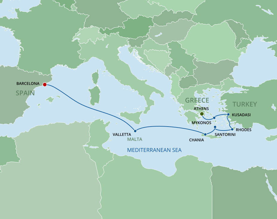 Souda Bay’s huge natural harbour is a spectacular entrance to Greece's largest island, Crete. Packed with beautiful beaches and rich maritime history, Crete is also a treasure trove of well-stocked museums, rich archaeological sites and charming Venetian fishing towns. Ships will dock at the Port of Souda.