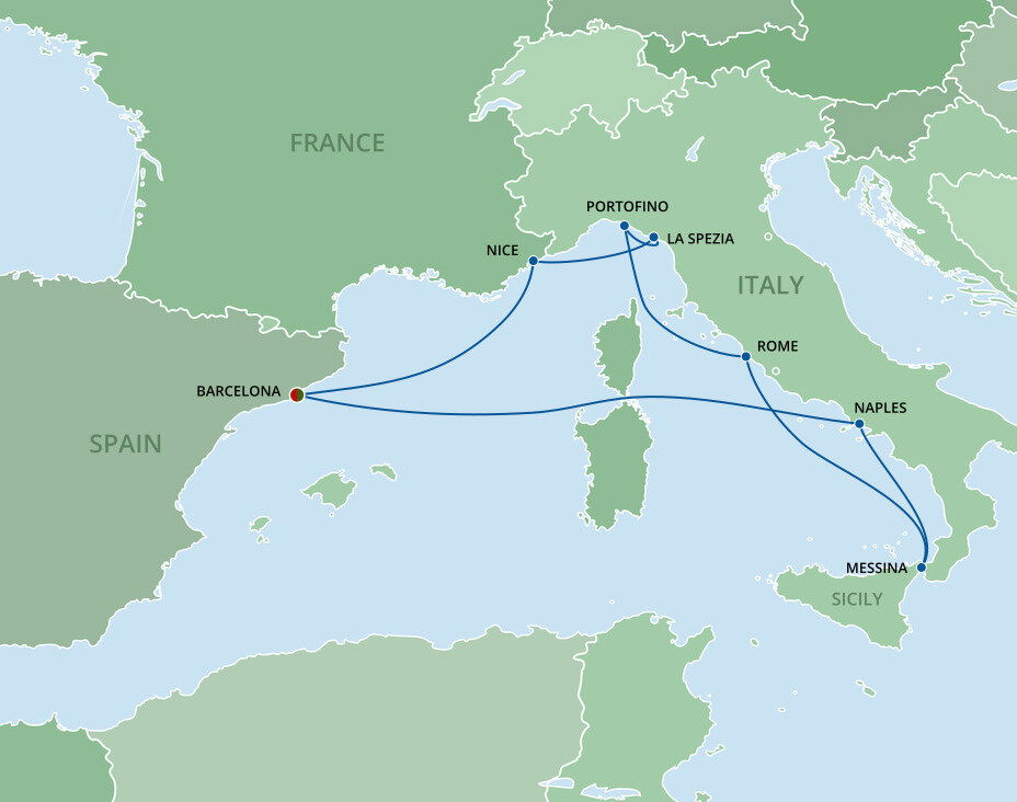 Messina is located on the northeastern corner of Sicily and is the panoramic gateway to the island. Sitting on a sickle-shaped harbour and under the gaze of Mt. Etna, the city is a patchwork of churches and antique palaces. Ships will dock at the cruise terminal.