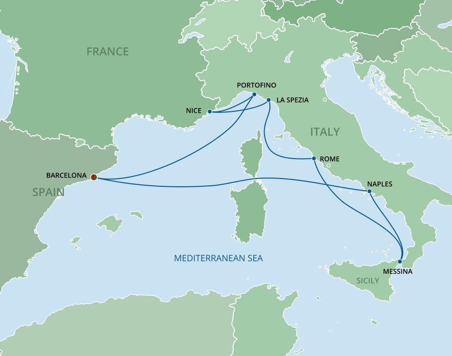 Messina is located on the northeastern corner of Sicily and is the panoramic gateway to the island. Sitting on a sickle-shaped harbour and under the gaze of Mt. Etna, the city is a patchwork of churches and antique palaces. Ships will dock at the cruise terminal.