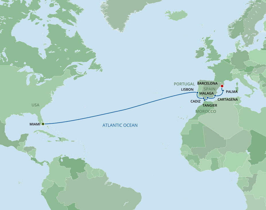 Your cruise finishes today in Barcelona, a captivating city on Spain's northeastern coast. If you're extending your stay in the city, start with a visit to La Sagrada Família, Antoni Gaudí's masterpiece, then wander through the narrow, historic streets of the Gothic Quarter.