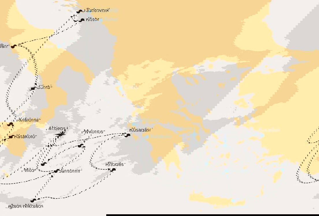 Welcome to the ancient city of Athens, the 'Cradle of Western Civilisation'. If your schedule is tight, savor traditional Greek coffee at a café with a view of the city's iconic ruins, soaking in the historic ambiance before your cruise departs. If you've got time to explore the Acropolis stands as a must-see, a UNESCO World Heritage site, adorned with iconic structures like the Parthenon and nearby Temple of Olympian Zeus. The nearby Acropolis Museum showcases stunning artifacts from ancient Greece, providing deeper insight into the city's heritage.