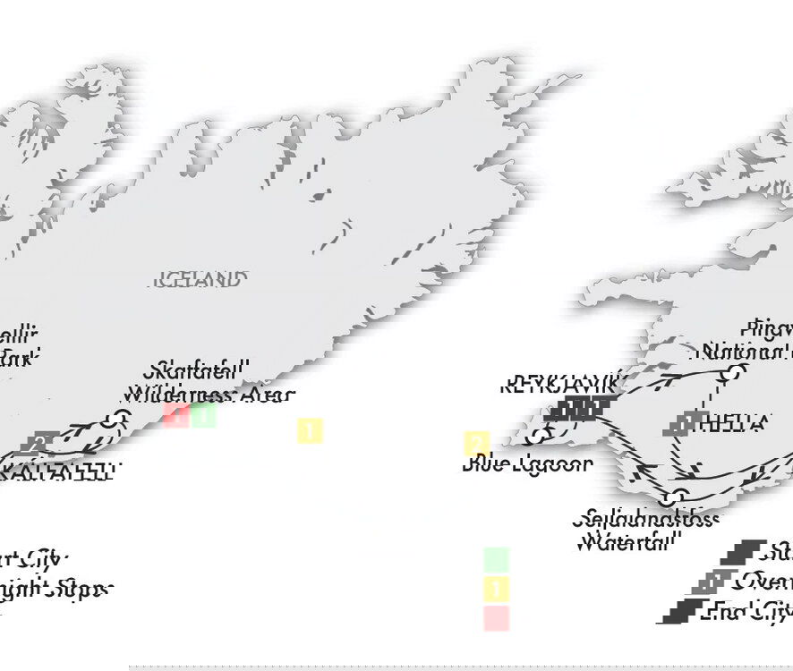 Begin your journey on the famed Golden Circle, starting with the spectacular Þingvellir National Park, a meeting place of old Icelandic clans. It is also where the Eurasian and North American tectonic plates meet above ground. Journey to the Secret Lagoon: small and intimate, it's where savvy travelers go to enjoy the Icelandic spa experience. Don't forget your swimsuit! Enjoy lunch in the greenhouse of Friðheimar Tomato Farm. Then it's on to the Strokkur geyser, which erupts every 10 minutes. Stop at Gullfoss Waterfall, one of the most photographed spots in Iceland.