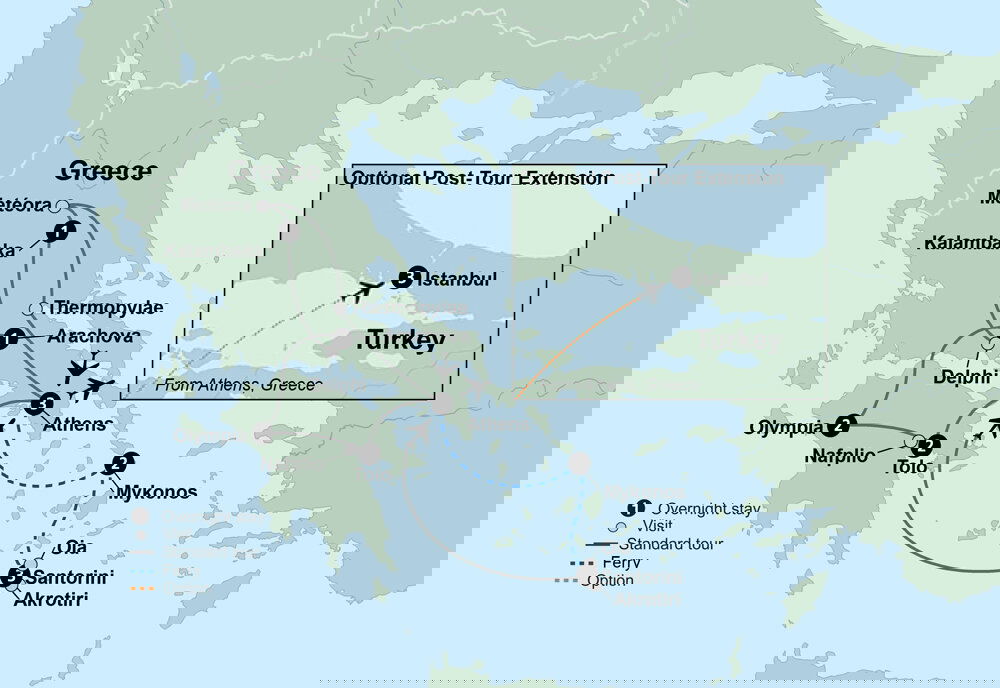Bid farewell to the Greek Islands and fly back to Athens for your overnight stay. Celebrate the end of a memorable trip to Greece with a delightful farewell dinner. (B/D) Stay: Crowne Plaza City Center