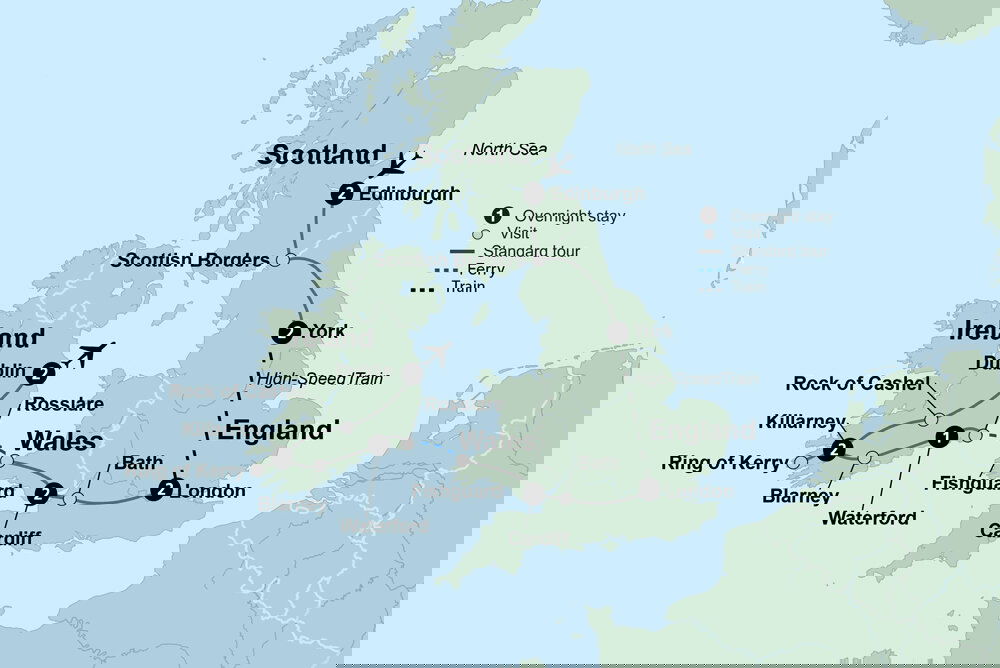 Depart today with many fond memories of lovely Britain and Ireland. (B)