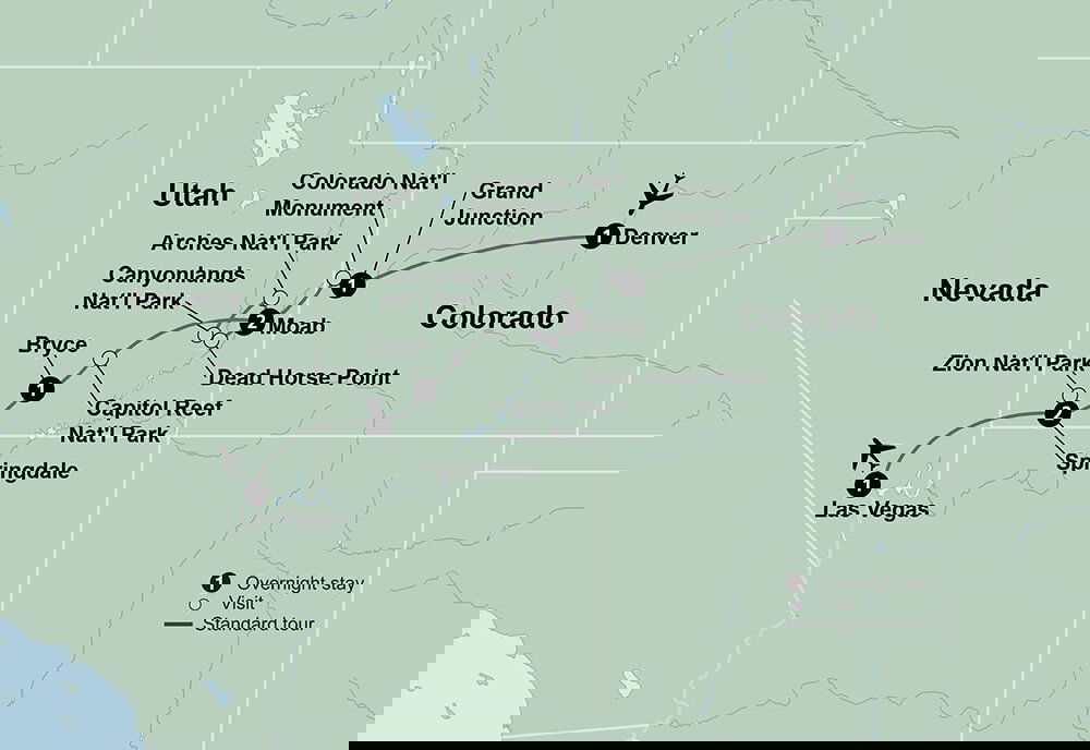 Trek across the Southwest as you take in the sienna-colored canyons, towering spires and desert landscapes found in Utah's five national parks. Your journey begins in the mile-high city of Denver – an urban gateway to America's natural beauty. As travelers' arrival times vary greatly, we have no group activities planned during the day. Stay: Grand Hyatt