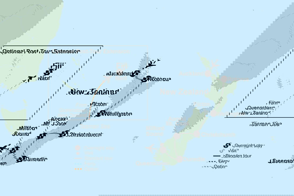 Your tour opens in Auckland, the “City of Sails,” consistently rated one of the world's best places to live. Auckland's Polynesian population instills into its chic atmosphere the vibrant feel of the Pacific Islands.