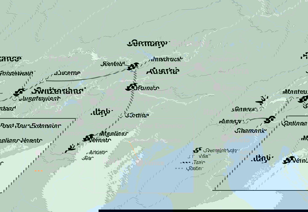 A short cogwheel train ride brings you to Jungfraujoch (UNESCO), known as the “Top of Europe.” Take your time to explore this eternal winter wonderland with impressive views of the imposing triple peaks of Eiger, Mönch, and Jungfrau. Wander the frosty halls of the Ice Palace to see works of icy art carved by local artists or stand next to the Swiss flag to capture your time above it all. Tonight is yours to do as you please. (B)