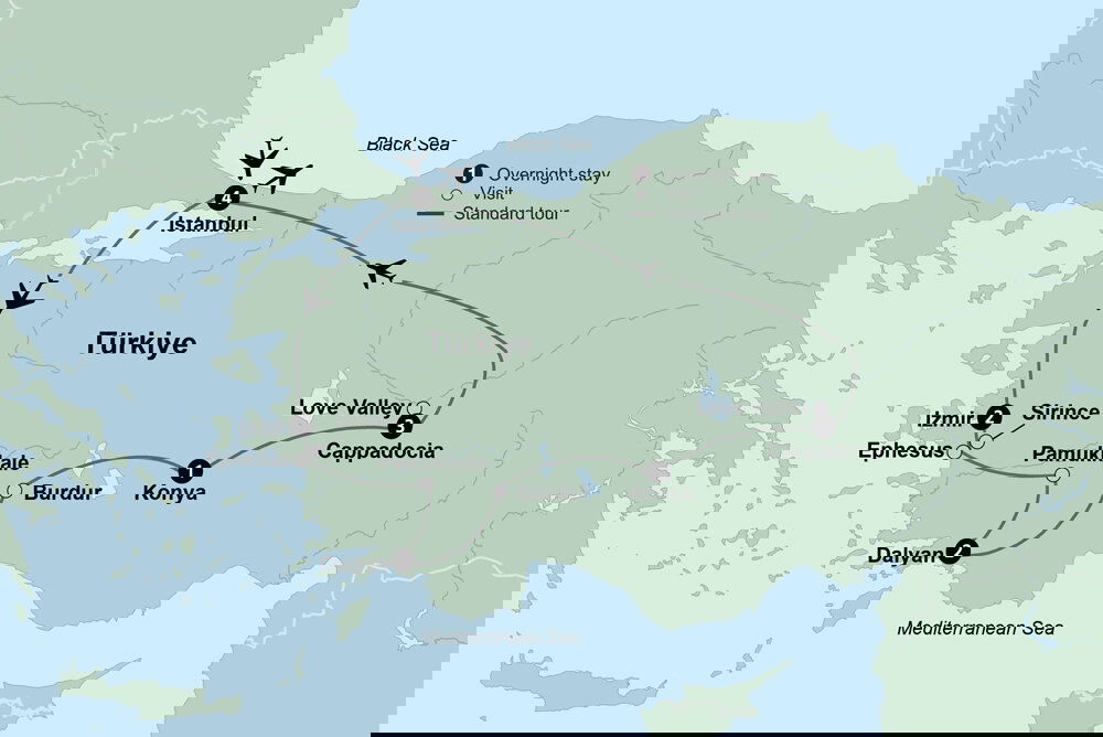 Early this morning, leave the bustle of Istanbul behind and take a flight to Izmir (known as Smyrna in antiquity), Turkiye's third most populous city and your home for the next two nights. Enjoy free time this evening to explore the seafront promenade with its shops and restaurants, just a short walk from your centrally located hotel. (B/L) Stay: En Hotel (2 Nights)