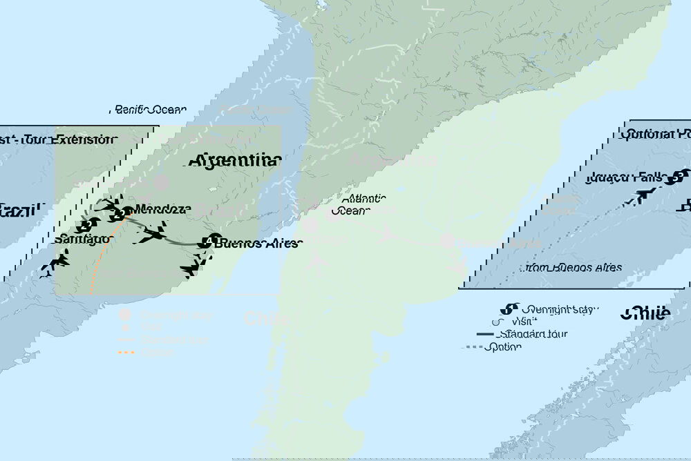 Upon arrival, a pick-me-up comes with a taste of yerba mate tea, a traditional South American caffeinated drink. As your guide demonstrates how to make a cup, learn about the cultural significance of this beverage that brings many Argentinean families together for daily “mate breaks.” Enjoy a tour of the vineyard followed by a hands-on cooking class with the winery chef. Finish off your visit with a gourmet, wine-paired lunch. The rest of the day is yours to enjoy the laid-back city of Mendoza with its inviting restaurants and atmospheric plazas. (B/L)