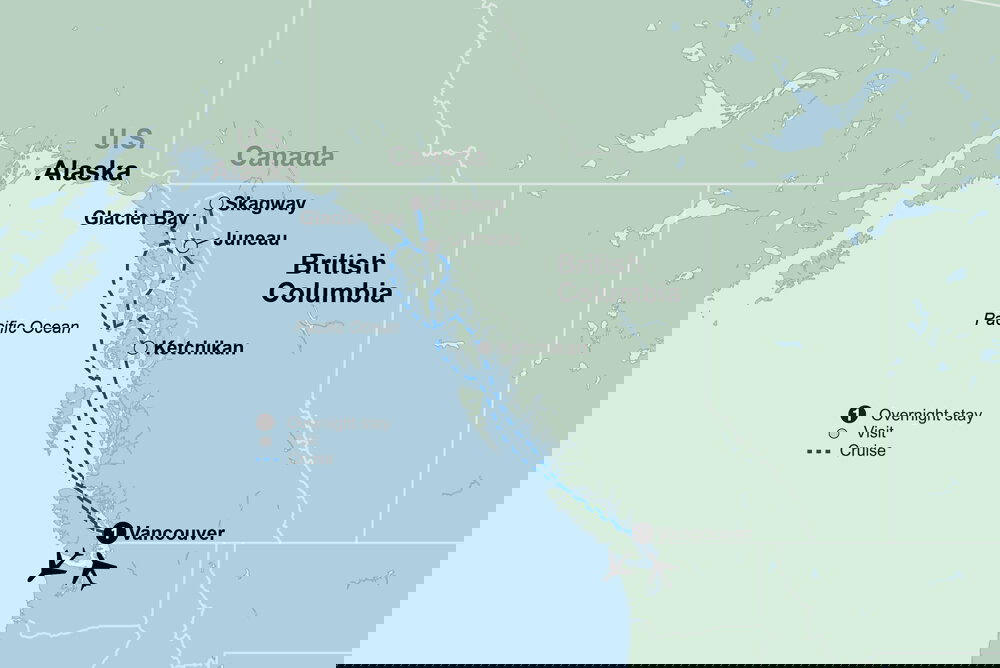 Your cruise ends this morning back in the vibrant city of Vancouver, leaving you with many wonderful memories of your tour through one of the last great frontiers. (B)