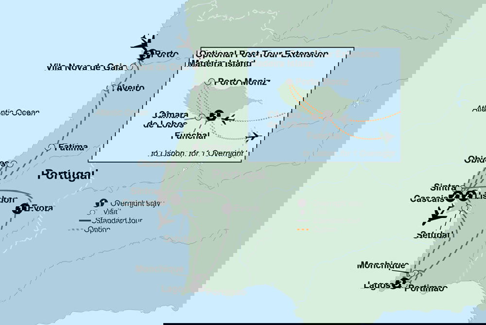 This morning, say goodbye to Porto. En route to the Portuguese Riviera, enjoy some free time to experience the city of Aveiro. This enchanting city is known for its canals and its egg-yolk desserts, loved by the Portuguese, and has a rich history and heritage fueled by its canals and Atlantic Ocean. After lunch on your own, the day's journey continues.