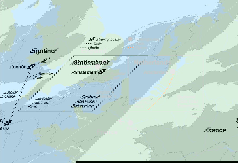 Allons-y! Today, you're off to Paris! Hop aboard the Eurostar high-speed train to get there in just two hours. A sophisticated metropolis of style and culture, Paris' bustling city streets are filled with colorful history, fascinating museums, renowned monuments and grand theatres.