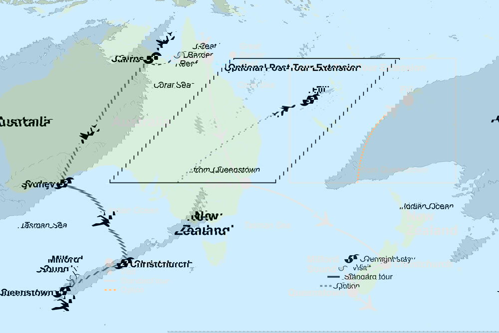 Following your cruise, you may choose to return to Queenstown via a short optional flight (weather permitting) for spectacular views of New Zealand's Southern Alps. (B/L)