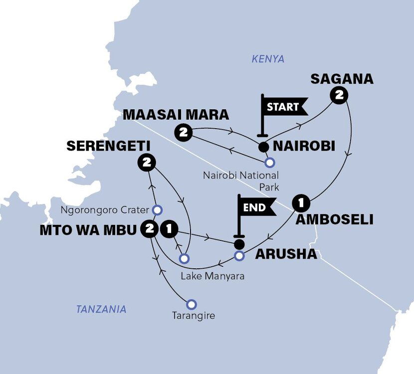 See ya in a bit, Mto Wa Mbu. We've got a couple more places to tick off. Switching to our pop-top safari vehicles, we'll head out on another game drive in search for the Big 5. Was that a lion? ! Oh, it was your tummy grumbling. Fear not - it's time for lunch. Next, one more game drive in the world-famous Serengeti before heading back to our camps for the night. (B/L/D) Stay: Seronera Camp (or similar)