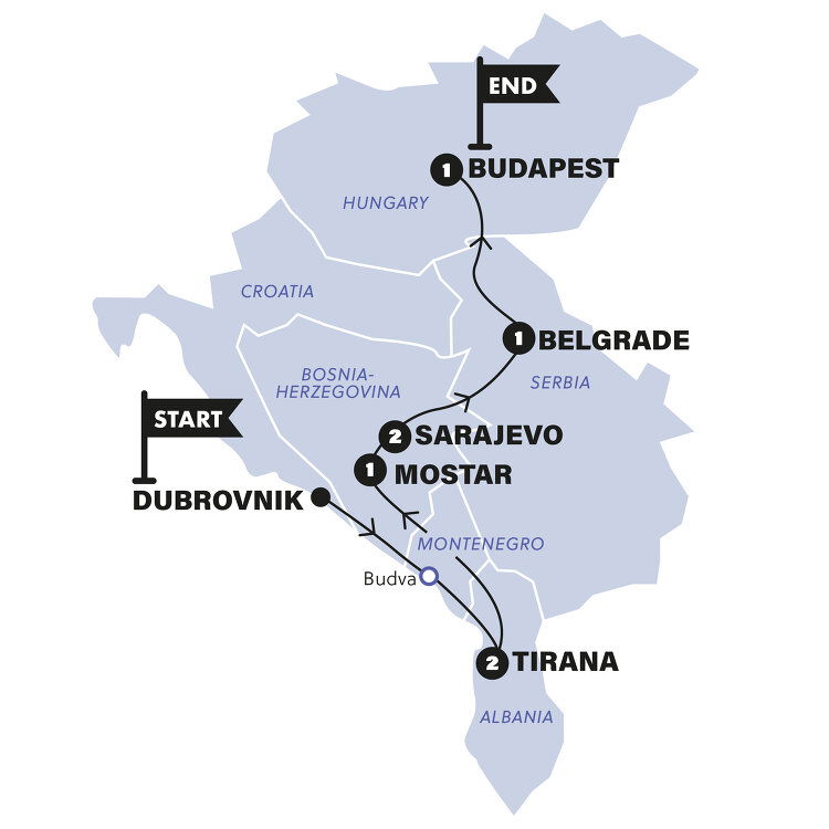 Good morning, travellers! Hope you're ready for an exciting ride across the beautiful Balkans. Today, you'll exchange hellos with your Trip Manager (and your new crew too!). With no time to waste, we'll head straight to our first stop.
