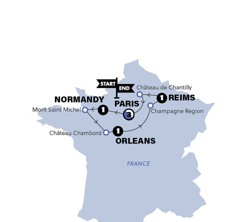 Au revoir, Paris. Next stop? The historic region of Normandy. History nerds, it's your time to shine. We'll stop by for lunch in the quaint medieval town of Bayeux. Then you'll visit the historic D-Day Landing Beaches & all its memorials. A quick tour of the Omaha Beach Museum will fill you in on their significance. A short drive later, we'll reach Caen - our home for the night. You've got plenty of restaurants to choose from for dinner tonight. Something tells us you'll be eating a lot of apples here… (B) Stay: Ibis Budget Caen Mondeville (or similar)