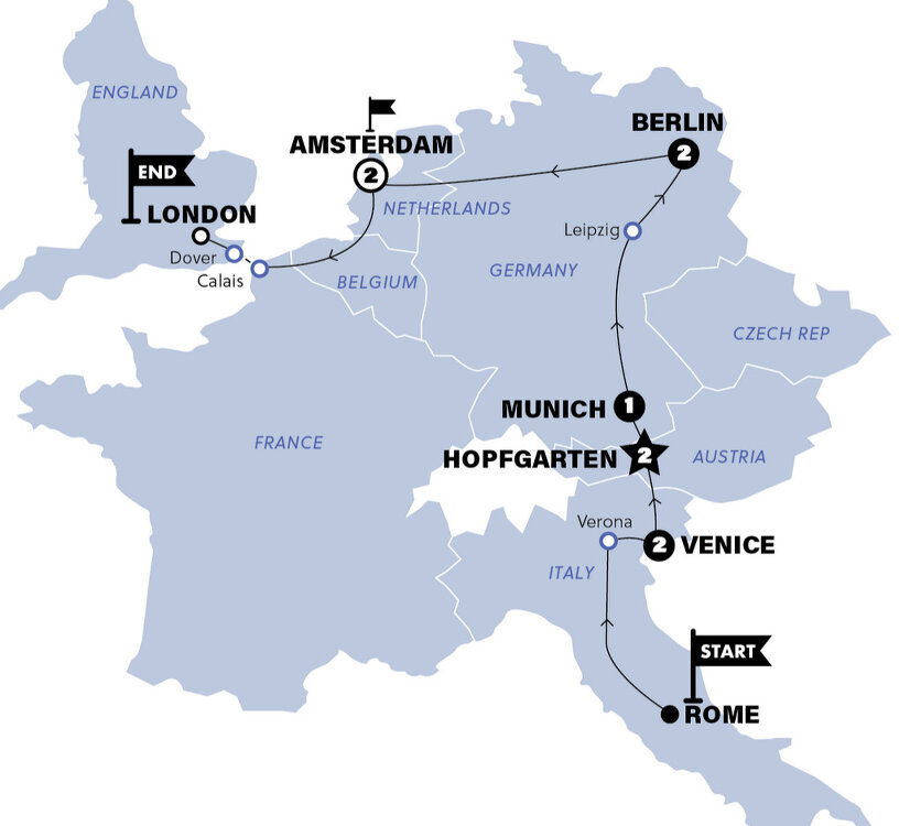This afternoon we cross from France to England......and then back to London-town, where you'll be left to start dreaming up your next big adventure. (B)