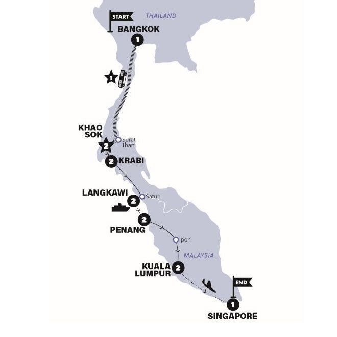 Heading south along the Thai peninsula, we'll arrive in Satun, where a ferry ride will land us in an untapped archipelago & a new country - Malaysia. For two days we will be free to lose sense of time amidst the slanted palm trees, teal waters & mountainous backdrop of Langkawi Island. (B) Stay: Holiday Villa Langkawi (or similar)