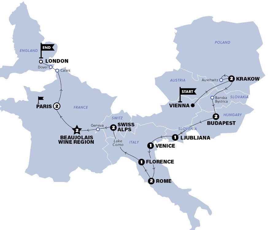 Hello and welcome to Vienna! Say hello to your new crew before we jump right into our very first day of adventure. Today we will change pace once we cross the border, as we drop to an unfamiliar and sobering level by visiting the concentration camp memorials of Auschwitz & Birkenau. Learning and growing is what we travellers do.