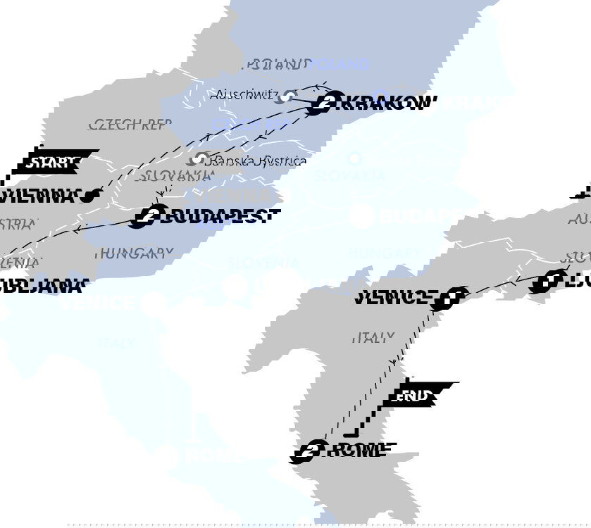 Hello and welcome to Vienna! Say hello to your new crew before we jump right into our very first day of adventure. Today we will change pace once we cross the border, as we drop to an unfamiliar and sobering level by visiting the concentration camp memorials of Auschwitz & Birkenau. Learning and growing is what we travellers do.