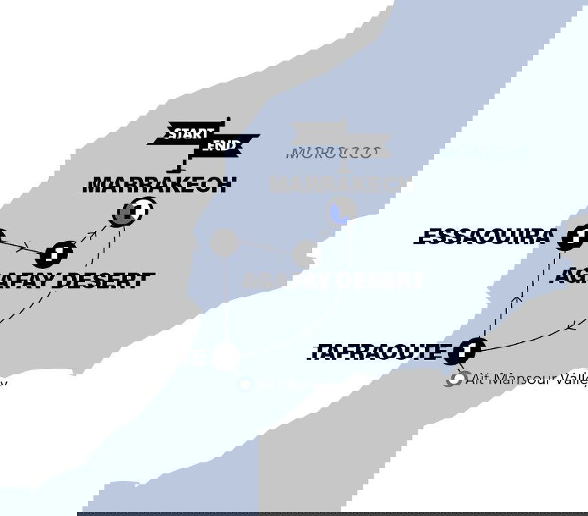 Our Moroccan exploration begins right here in its buzzing capital! We'll pick you up at the airport and head straight to our hotel, where you'll meet your new crew. You have the chance to get energised with a delicious lunch before we wander around for a tour of the city's mosques, madrassas, squares and souks. Then, it's back to our hotel for dinner. (D) Stay: Hotel El Andalous (or similar)