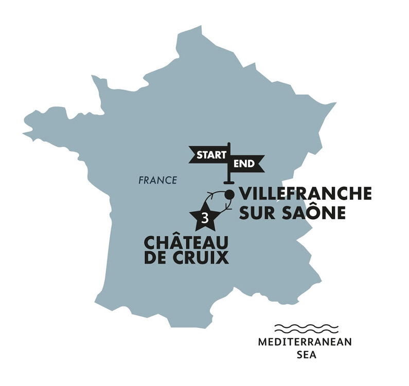 Once we've checked in and chilled out we'll be feeling like royalty, and that's before we enjoy some local wine paired with cheese. Then our team of live-in chefs will prepare an authentic French Dinner. We'll tuck in while enjoying magnificent views of the Beaujolais countryside. What a day, and we're just getting started... (D) Stay: Château de Cruix (or similar)