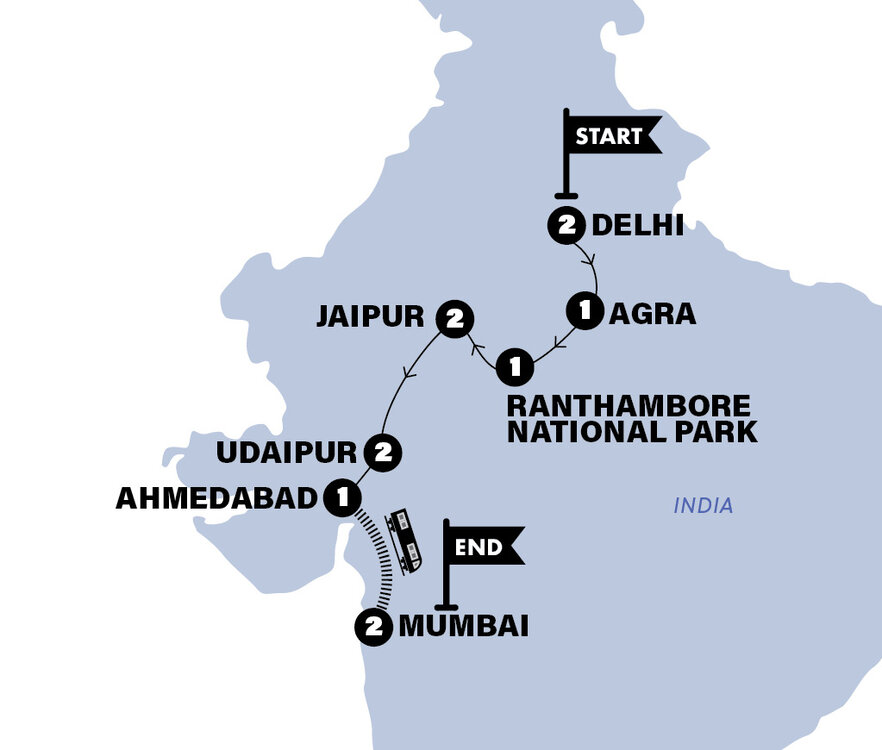 Wakey Wakey. We're catching the early morning train to Mumbai, aiming to roll in around lunchtime. Mumbai is a sensory overload where workers, artists, celebrities and fishermen all walk the same walk. This afternoon, you'll have a chance to experience the city with an optional Khau Gully Food Tour, which celebrates the seismic street food of Mumbai. (B) Stay: Hotel Suba Palace (or similar)