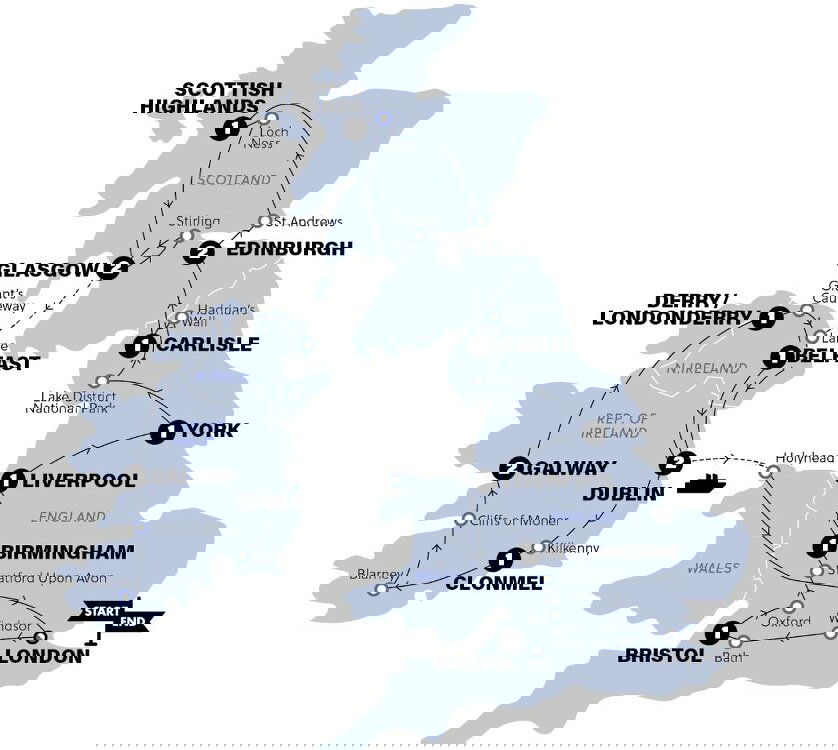 Scotland, you've been unreal. If Ireland puts on half the show you did, we have many happy days ahead of us. We arrive in the port town of Larne, your first steps on Northern Irish soil, but not for long... So much more than the capital city, Dublin is a place of heritage, character, and more cute pubs than you could crawl in a week. End the day with a lively night of festivities at the cobbled lanes of Temple Bar. (B/D) Stay: Travelodge Plus Dublin City Centre (or similar)
