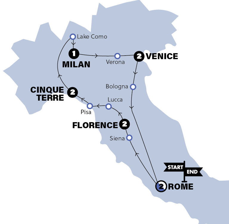 Florence is basically a giant open-air museum, and today we're hitting it on foot. With a Local Guide, we'll check out Giotto's Bell Tower, Basilica Santa Croce, Piazza della Signoria, and the epic Duomo. Tonight, it's all about an optional Tuscan evening with a risotto demo, local wine, antipasto, and some ‘dolce' to finish. (B)
