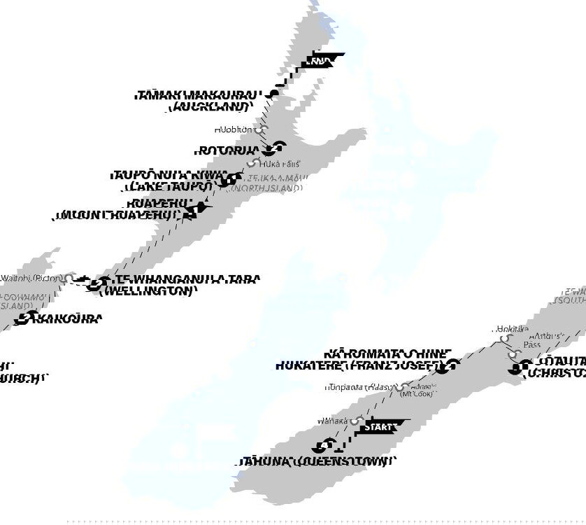Afterwards we'll continue on to Wellington, the capital of NZ since 1865, when it replaced Auckland. Almost thirty years later, Wellington parliament was the first in the world to allow women the right to vote. A pretty cool city all in all. By the afternoon, we'll have reached Wellington (Te Whanganui a Tara), just in time for a tour of the city. After an orientation through the narrow streets of Wellington, and a chance to explore the great food scene, a night on the town will be on the cards. (B) Stay: Mercure Wellington Abel Tasman (or similar)