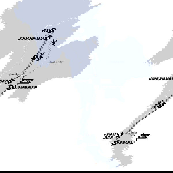 Satisfied with our exploration of the north, we're now heading down south to see what this part of the country holds for us – which, if we're lucky, will be even more beautiful destinations and mouthwatering local food. From Chiang Mai we'll board a flight to Bangkok, back where it all began! Landing in familiar territory, we'll Check in to our central accommodation here in Bangkok.
