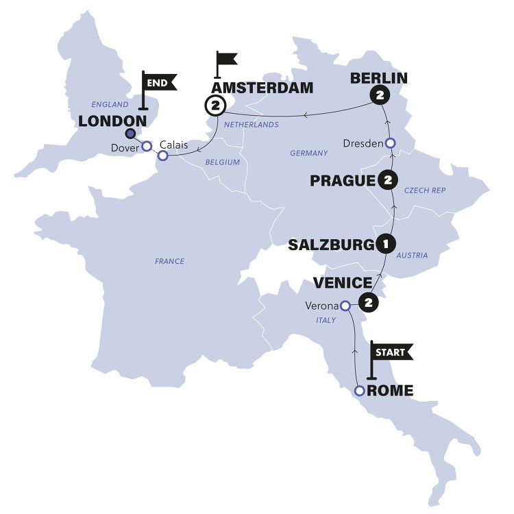 It's time to hit the original fast-track of the autobahn and make our way out of Germany. We have one last city to tick off & it's sure to see us go out with a bang. Whatever eclectic fantasies you have about Amsterdam, the real life version will impress you more. Fire yourself up for pretty canals, a bounty of unique museums & quirky cafes galore. (B/D) Stay: Via Hostel Amsterdam (or similar)