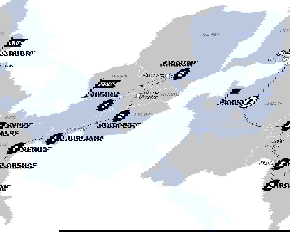 We'll arrive in Vienna full of excitement and ready for coffee & sachertorte, otherwise known as the world's greatest chocolate cake. Get to know your new travel squad over dinner tonight, and maybe a few schnaps, since we're in Austria after all. (D) Stay: A&O Vienna Hauptbahnhof (or similar)