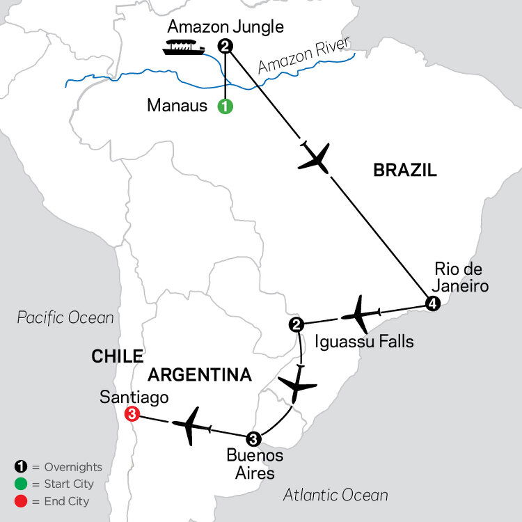 Please note: you will meet your Tour Director in Rio de Janeiro.Floating past the clustered huts of locals living on the banks of the river, cruise down the Rio Negro to the Meeting of the Waters. Marvel at the confluence of the dark-colored Rio Negro and the light chocolate-colored Rio Solimões, where the two rivers come together to form the mighty Amazon. For four miles, these two bodies of water flow side by side before they mix together.