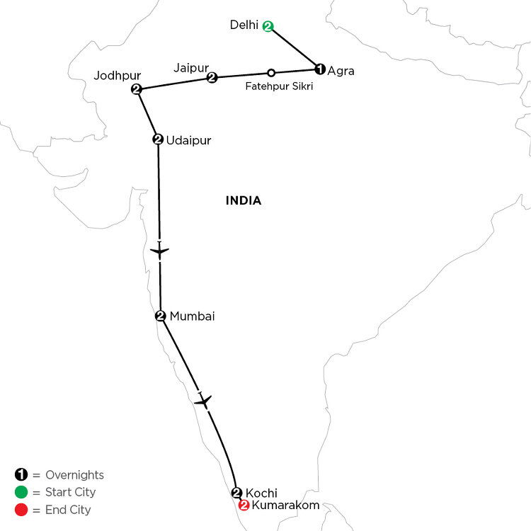 Today, fly to Kochi, the “Gateway to Kerala,” India's southernmost state known for its natural beauty. (B)