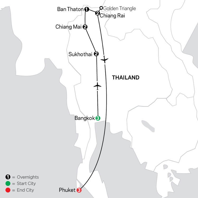 Today, transfer to Chiang Rai airport for your flight to Phuket (via Bangkok). On arrival, you will be met by a local representative and transferred to your hotel. (B)
