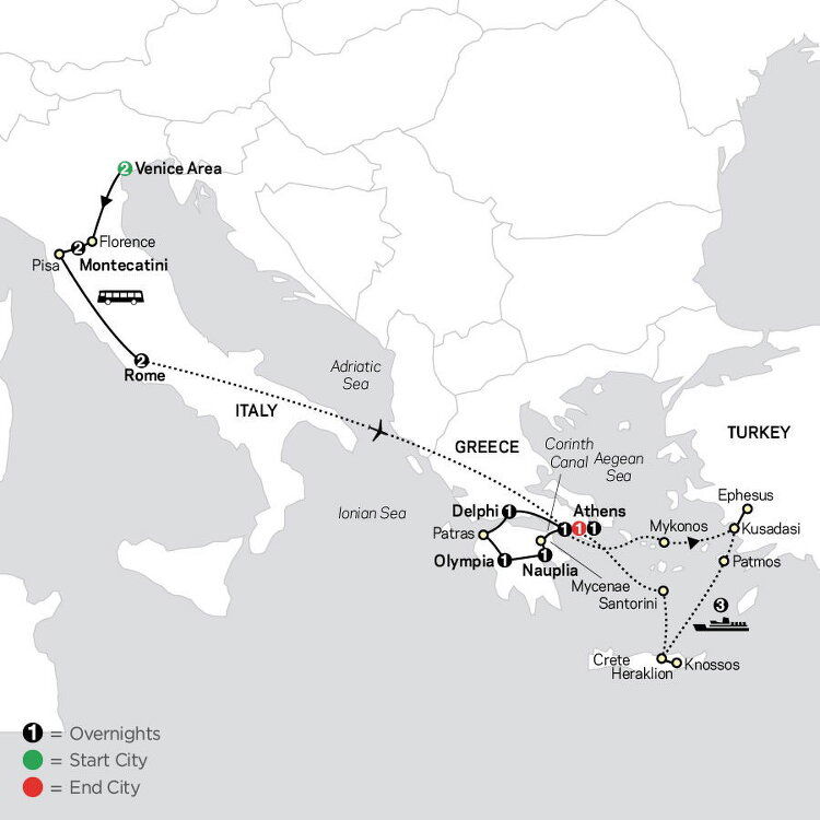 * For operational reasons, changes to the Rome program cannot be excluded.Transfer to the airport for your included flight to Athens. From the capital of Italy to the capital of Greece, absorb the Mediterranean flair and discover the influence of ancient Roman and Greek civilizations on modern life and arts. (B)