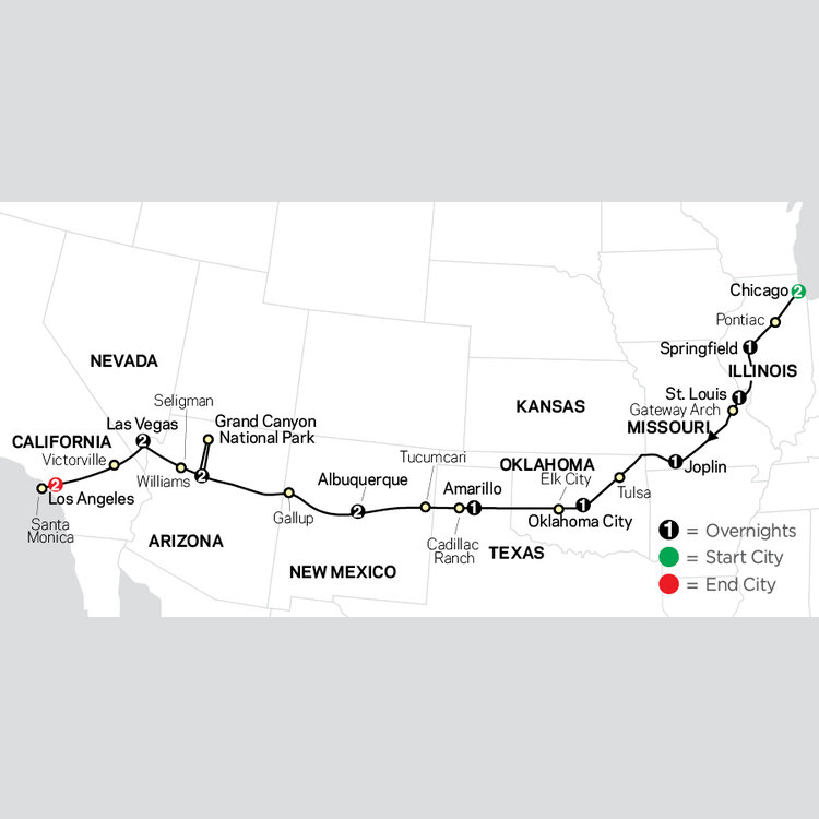 Once settled into your hotel, perhaps start exploring the city via the 1.25-mile Riverwalk along the Chicago River or do some shopping at the many well-known retail destinations along Michigan Avenue, better known as the Magnificent Mile.Known as the “Windy City,” Chicago is home to iconic architecture including one of America's tallest buildings, notorious gangster Al Capone, and countless jazz and blues clubs. Oh, and deep-dish pizza, of course! Get to know this exciting city on a morning sightseeing tour that includes the sign marking the start of historic Route 66. Spend a free afternoon exploring Chi Town—perhaps visit the 103rd-floor Skydeck of the Willis Tower (formerly the Sears Tower) for spectacular city views, admire amazing works of art at the Art Institute of Chicago or take an optional river cruise for a different view of the city's celebrated architecture.