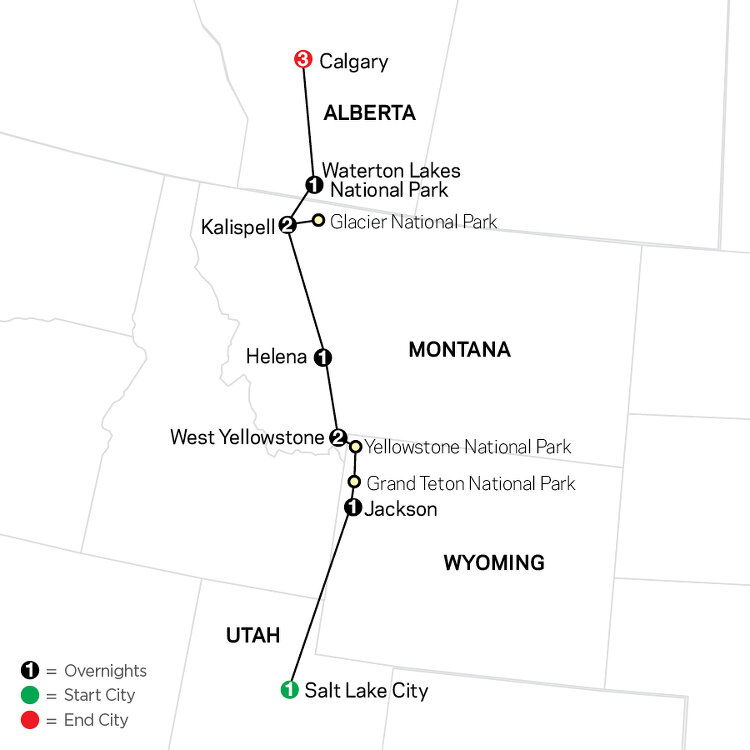 Cross into Canada and enter Waterton Lakes National Park where the wilderness of Alberta's prairies meets the natural beauty of the Canadian Rockies. You'll overnight in the park, which is brimming with diverse landscapes, crystal clear lakes, cascading waterfalls, and towering mountain peaks. Tonight, things are looking up with an optional Dark Sky Stargazing excursion if the heavens and weather permit. (B)