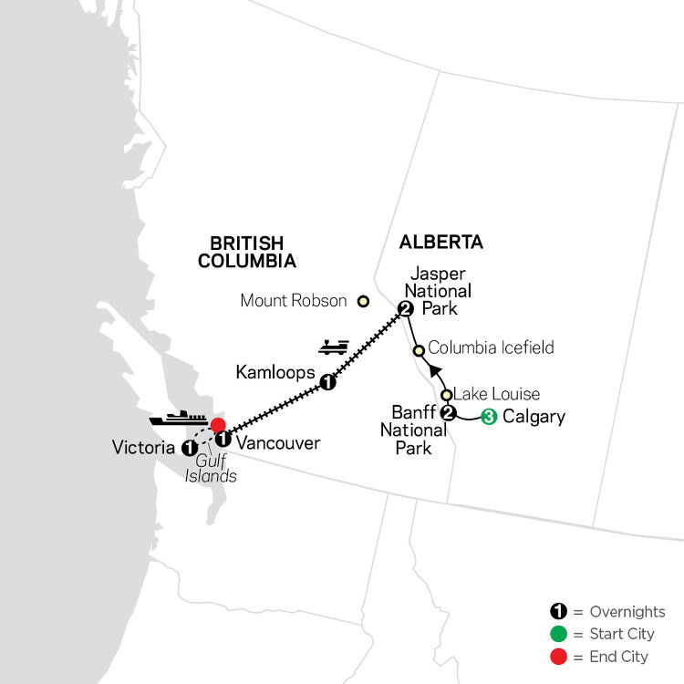 *This optional excursion begins operating in late May/early June.An exciting morning as you board the Rocky Mountaineer for a 2-day, all-daylight, classic rail journey from the Canadian Rockies to the Pacific Coast. En route, pass Mount Robson, the highest mountain in the Canadian Rockies. Follow the North Thompson River and enjoy vistas of the Monashee Mountains. Enjoy free time in Kamloops this evening. (B/L)