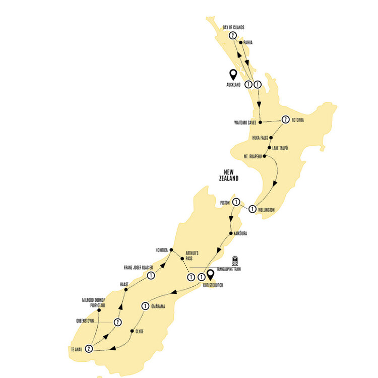 Tonight, meet your Travel Director who'll give you the lowdown on the adventure to come. You'll get the key details, a few handy local tips and a chance to meet your fellow travellers before you hit the road tomorrow. Stay: Holiday Inn Express Auckland City Centre