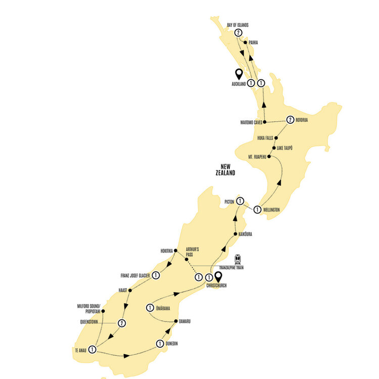 Tonight, raise a glass with dinner and drinks to toast your adventure from glaciers to glowworms and just about everything in between. Swap photos, swap stories and enjoy that end-of-trip glow with your travel mates. (B/D) Stay: Holiday Inn Express Auckland City Centre