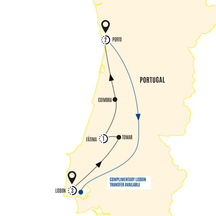 Leave Lisbon behind, bound for the Templar city of Tomar for an orientation with your Travel Director, a beautiful reminder of Portuguese Renaissance. Continue to Fátima, a site of a celebrated religious miracle where three young shepherds are said to have seen an apparition of the Virgin Mary in 1917. Explore the Basilica and Sanctuary on your own before dinner at your hotel with your travel companions. (B/D) Stay: São José